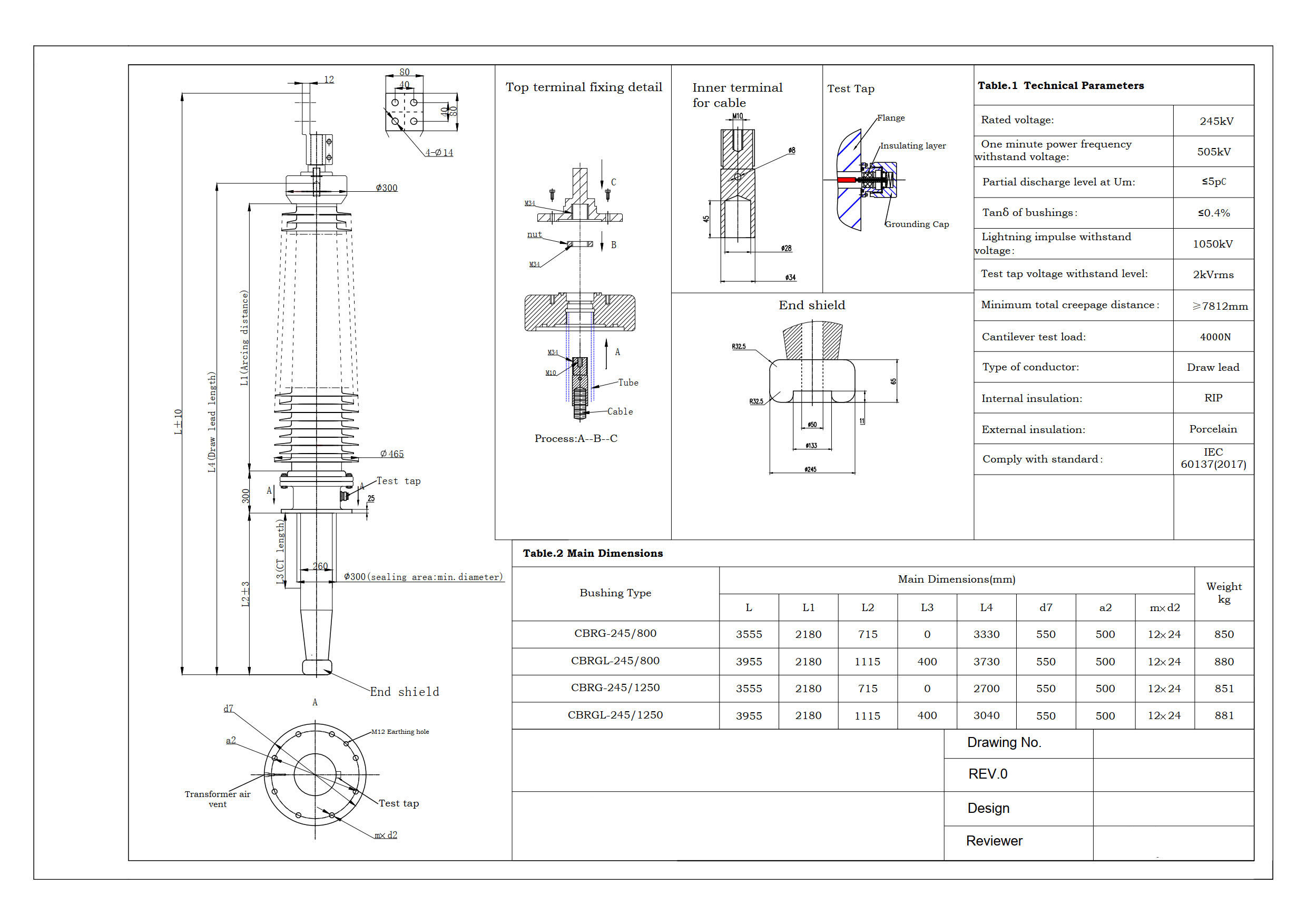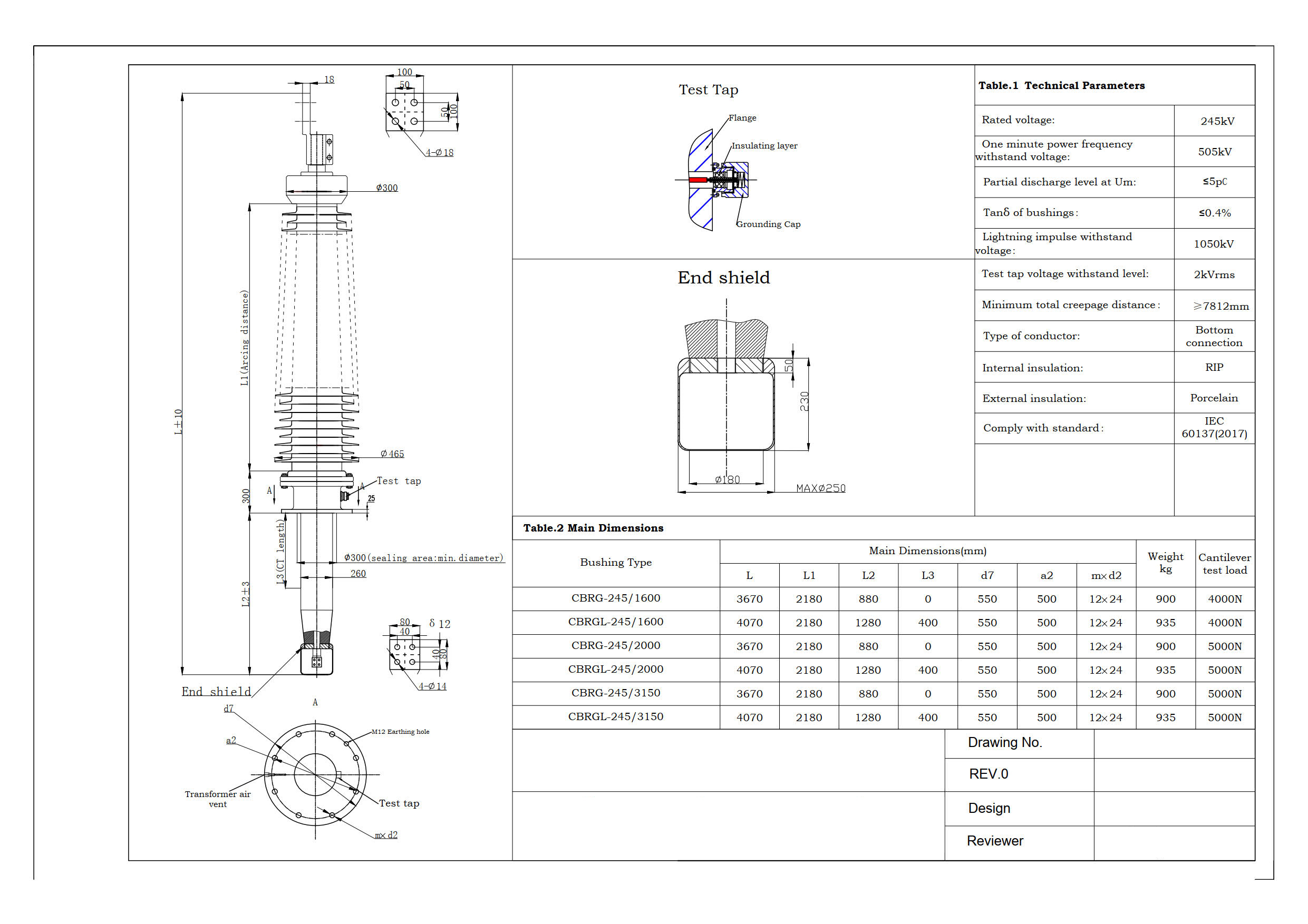 1- Transformer Bushing Parameter Catalogue 52kV to 550kV